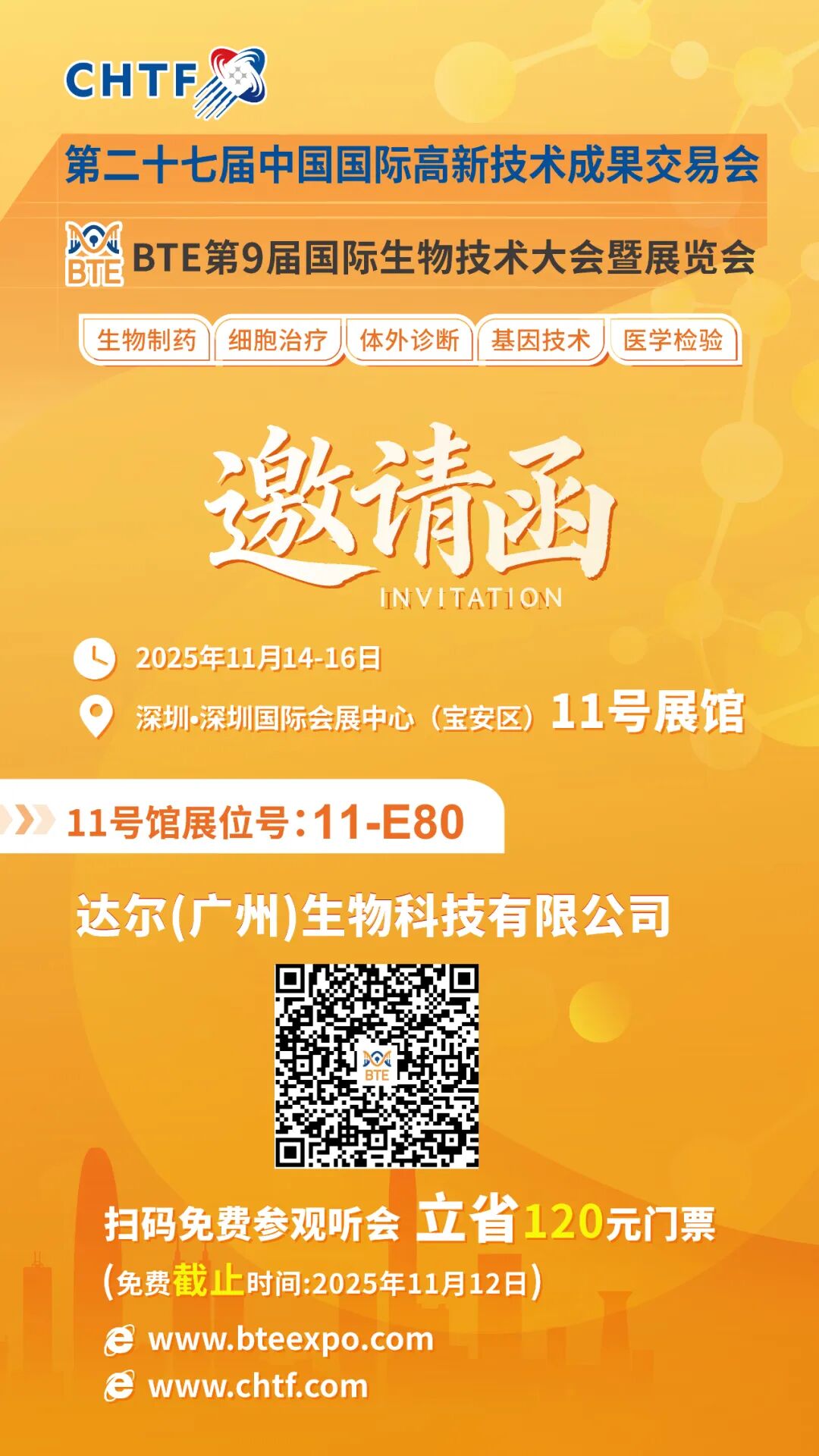 第二十七届中国国际高新技术成果交易会(简称:高交会),将于2025年11月14-16日在深圳国际会展中心举办。达尔生物展位号:11-E80(11号展馆)。